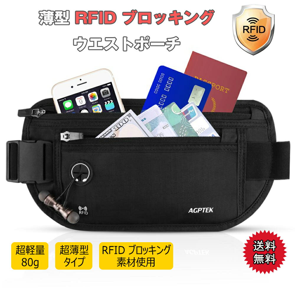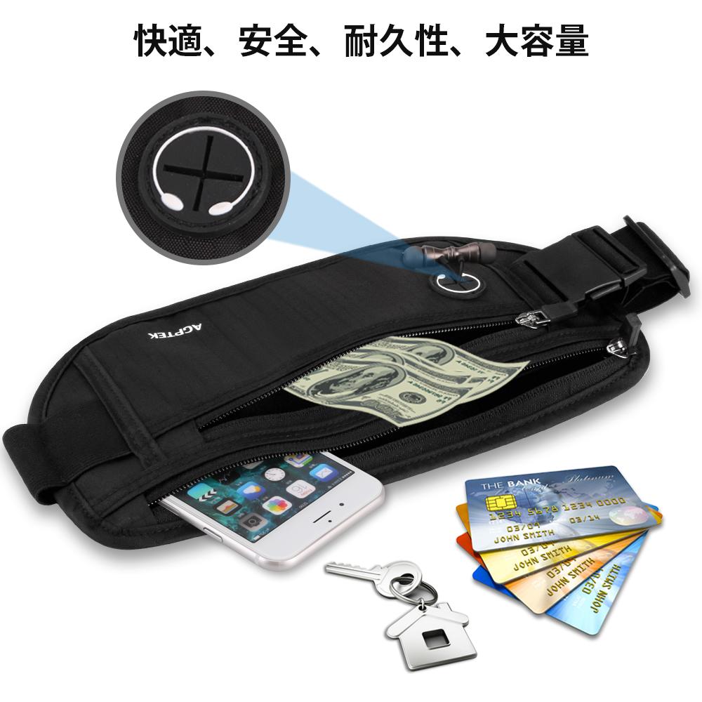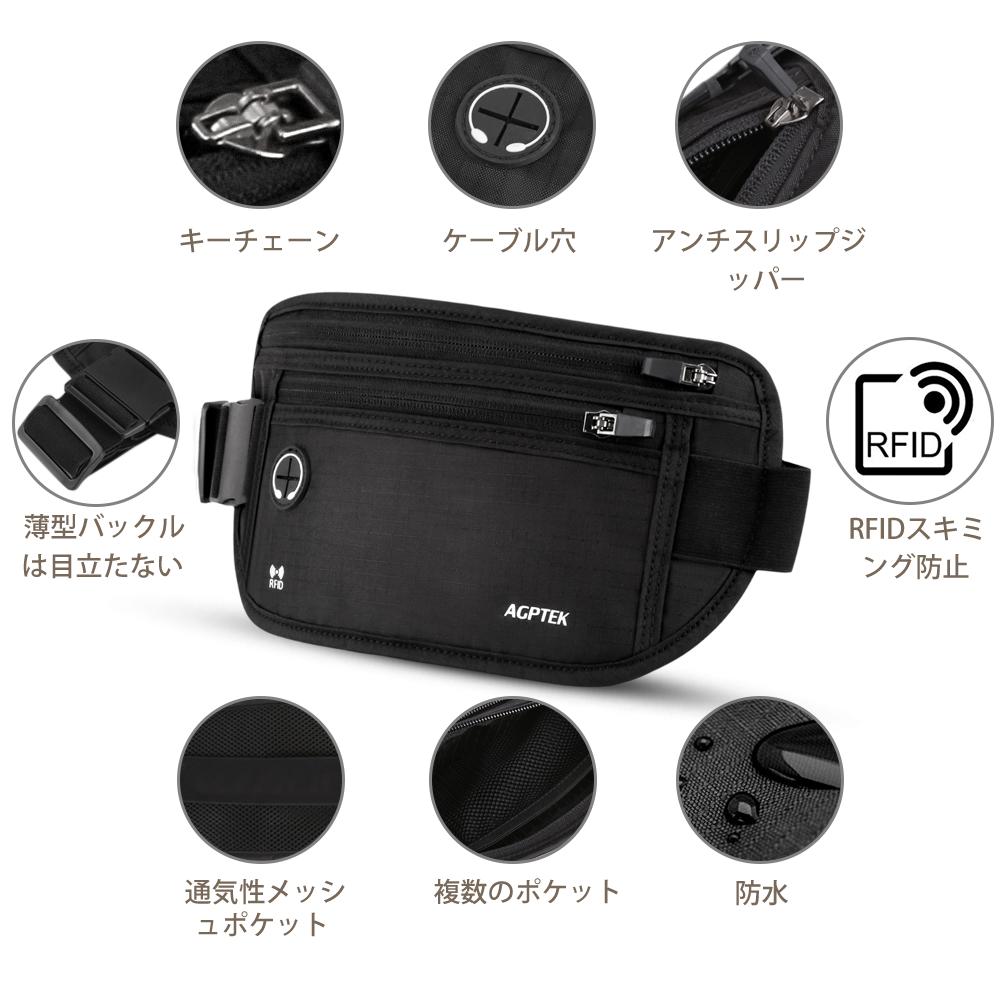 AGPTEK セキュリティポーチ スキミング防止 ウエストポーチ パスポートケース RFID 遮断ケース 盗難対策 貴重品入れ ウエストバッグ ランニングベルト 防犯グッズ 折りたたみ式 薄型 アウトドア 便利グッズ 海外旅行 旅行用品 iPhone 7 Plus/6S Plus収納可 ブラック