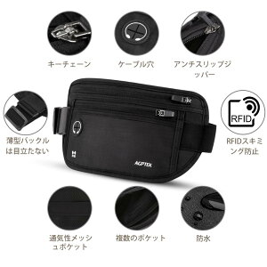 AGPTEKのウエストポーチは、スキミング防止RFIDブロッキング素材採用で、カードやパスポートの情報盗み取りを防止します。