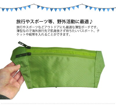 旅行やスポーツなどアウトドアにも最適な薄型ポーチです。