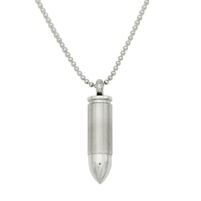 ペンダントトップ サージカルステンレス 弾丸型のネジ式ロケットペンダント マット加工 Sサイズ 銀色 シルバー ネックレスチェーン付き 砲弾型 カプセル カロート 遺骨入れ 薬入れ ピルケース|医療用ステンレス アクセサリー レディース メンズ
