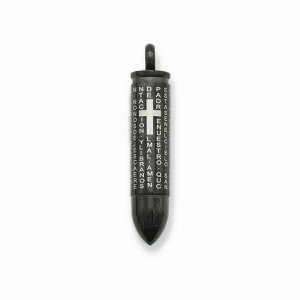 ペンダントトップ サージカルステンレス メッセージ入り弾丸型のネジ式ロケットペンダント 直径10.0mm 高さ50.0mm 黒 ブラック ネックレスチェーン付き 砲弾型 カプセル カロート 遺骨入れ 薬入れ ピルケース|医療用ステンレス アクセサリー レディース メンズ