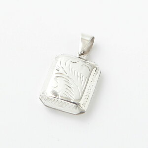 男女を問わずお使いいただけるスクエア・ケースに植物をあしらい、、表裏に凹凸感を生かした凝った作りの、ロケットペンダントです。