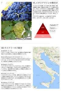 ブドウ品種・ワイン産地一覧 黒ブドウ(北部) ネッビオーロ バルベーラ ドルチェット ブラケット ピノ・ネーロ コルヴィーナ コルヴィーナ・ヴェロネーゼ 白ブドウ(北部) コルテーゼ アルネイス モスカート・ビアンコ シャルドネ リースリング ガルガネガ トレッビアーノ グレーラ プロセッコ 黒ブドウ(中部) サンジョベーゼ カナイオーロ・ネーロ メルロー カベルネ・ソーヴィニョン モンテプルチアーノ 白ブドウ(中部) ヴェルナッチャ トレッビアーノ・トスカーノ マルヴァジア・ビアンカ 黒ブドウ(南部) アリアニコ プリミティーヴォ ネグロアマーロ ガリオッポ ネロ・ダヴォラ 白ブドウ(南部) グレーコ フィアーノ 生産地(北部) ヴァッレ・ダオスタ州 ピエモンテ州 ロンバルディア州 ロンバルディア州 トレンティーノ・アルトアディジェ州 ヴェネット州 フリウリ・ヴェネッチア・ロマーニャ州 エミリア・ロマーニャ州 生産地(中部) トスカーナ州 ウインブリア州 マルケ州 ラツィオ州 アブルッツォ州 モリーゼ州 生産地(南部) カンパーニア州 プーリア州 バジリカータ州 カラブリア州 シチリア州(島) サルデーニャ州(島)