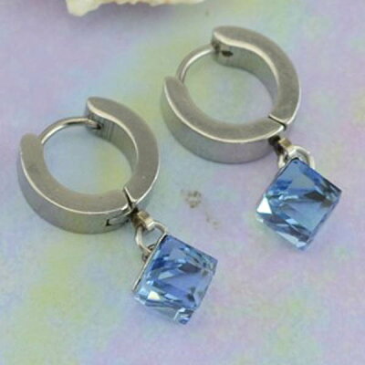 ブルー アイスキューブチャームフープピアス 1個販売 サージカルステンレス316L メンズ レディース ステンレスピアス リングピアス 揺れる スクエア 四角 女子人気 18G 18ゲージ ヘリックス 軟骨 耳 結婚式 パーティー ウエディング 女性 綺麗 水色 青色 プレゼント