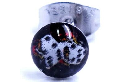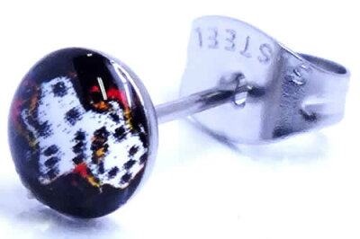 2個のサイコロが燃えるパンクロックなステンレスピアス。