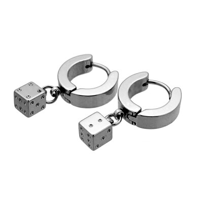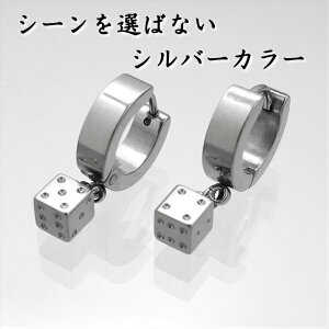 【送料無料!クーポンで20%OFF】フープピアス ステンレス 金属アレルギー メンズ レディース サイコロ ピアス ノンアレルギー 面白