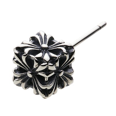 クロスダイスピアス e0552 縦:6mm 横:6mm 厚さ:6mm 重さ:1g ゴシック調のクロスを彫り込んだサイコロ状のシルバー製スタッドピアスです。
