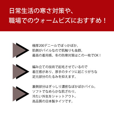 詳細 ALPINAMADAM【アルピナマダム】 〜プレミアムタイツ〜 日常生活や、職場でのウォームビズにおすすめ! 極厚200デニールでポッカポカ。