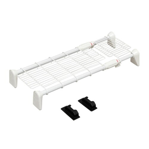 ●商品サイズ(cm):幅約55〜75×奥行約27×高さ約9.5 ●重量:約1.235kg ●耐荷重(約) 55cmの場合:60kg、75cm場合:30kg ●材質:塩化ビニル被覆スチールパイプ、ABS樹脂、スチール★