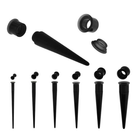 アクリル製のネジフレアとジョイントできるネジの拡張器をセットにしたボディピアスセット。